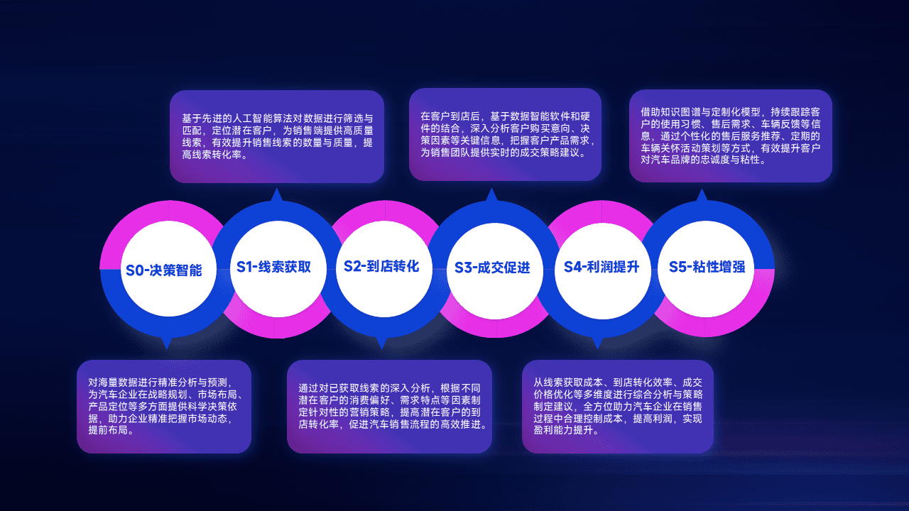 通过拓宽潜在客户来源、、、优化线索分配并提高到店转化率,,,,以增强销售效率。。同时,,利用线索数据不断优化分析模型,,,有效提升转化率,,,,扩大营销影响力。。。